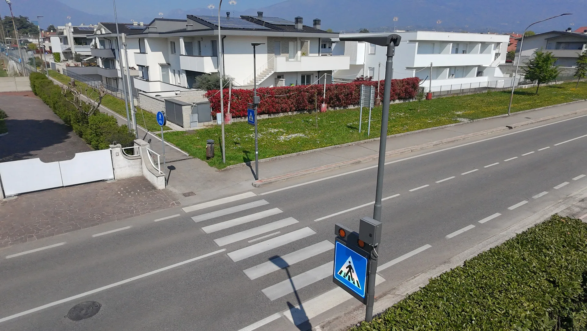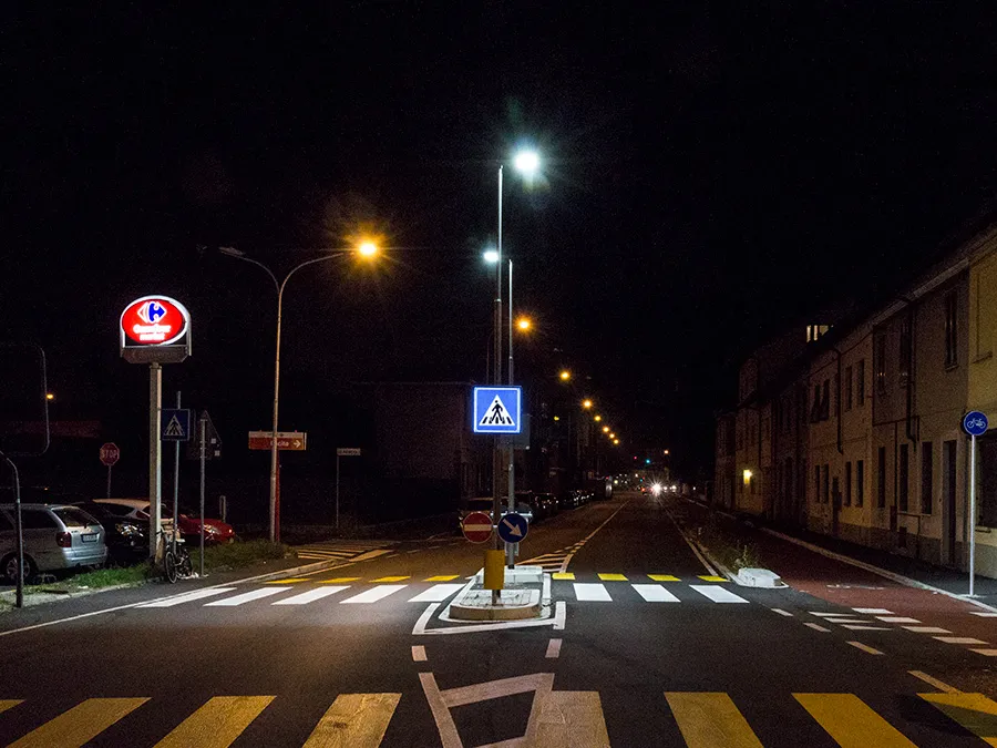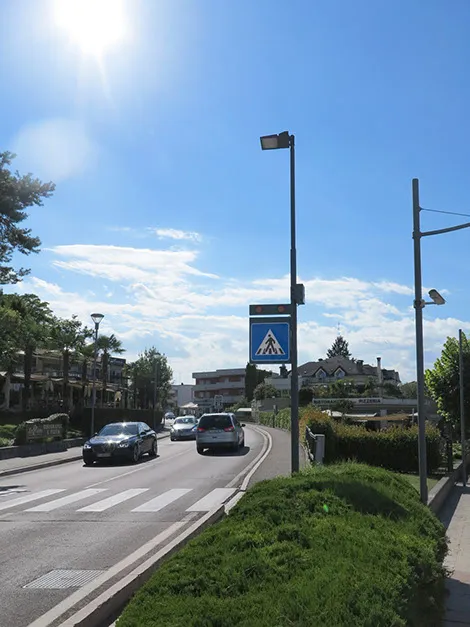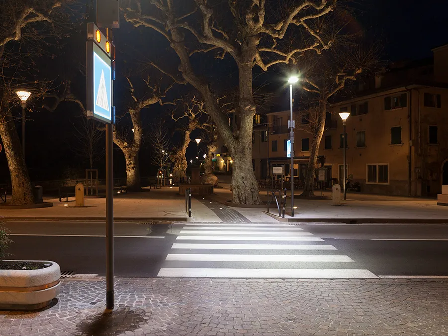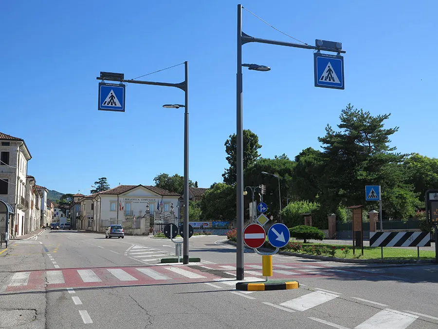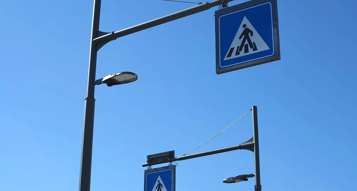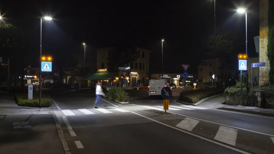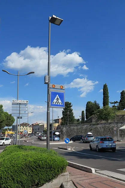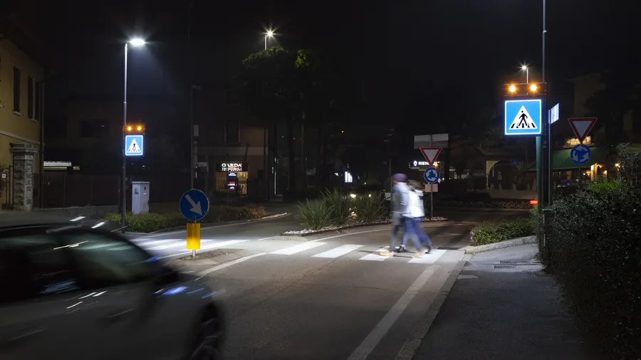 Sistema di segnalazione ed illuminazione a LED degli attraversamenti pedonali creato per raggiungere massimi livelli di sicurezza per i pedoni utilizzando le più recenti tecnologie.